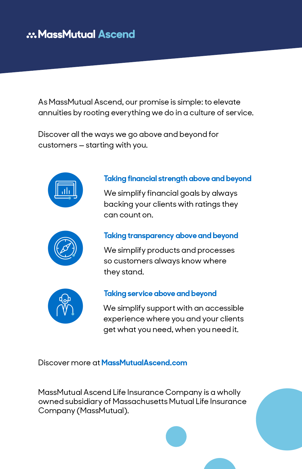 Having developed the brand story, tagline, manifesto, elevator pitch and messaging guidelines, I was able to please two clients — Great American Life Insurance Company and MassMutual — throughout the acquisition.
